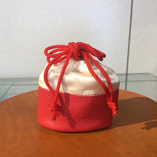 明石屋の巾着袋は、日本の牛革を使い、 革の特性を活かし、しっかりと自立しながらも、しなやかに手に馴染むデザインで、 着物と革を組み合わせた手のひらサイズのかわいらしいオリジナルの巾着袋です。 着物の柄部分の素材は、伝統的な着物をそのまま使用しており、 素材は日本製のシルク100%で、他に同じものがひとつとない一点もので、 職人が一つ一つ丁寧に手づくりで製作しています。 使い方はアメちゃん入れや、コスメポーチ、キーケースとしてなど、 アイデア次第で自由にお使いいただけます。 ・サイズ タテ 約 12 cm × ヨコ 約 12 cm マチ 約 7.5 cm * 着物生地に多少のムラやキズ等、個体差があります。ご了承ください。