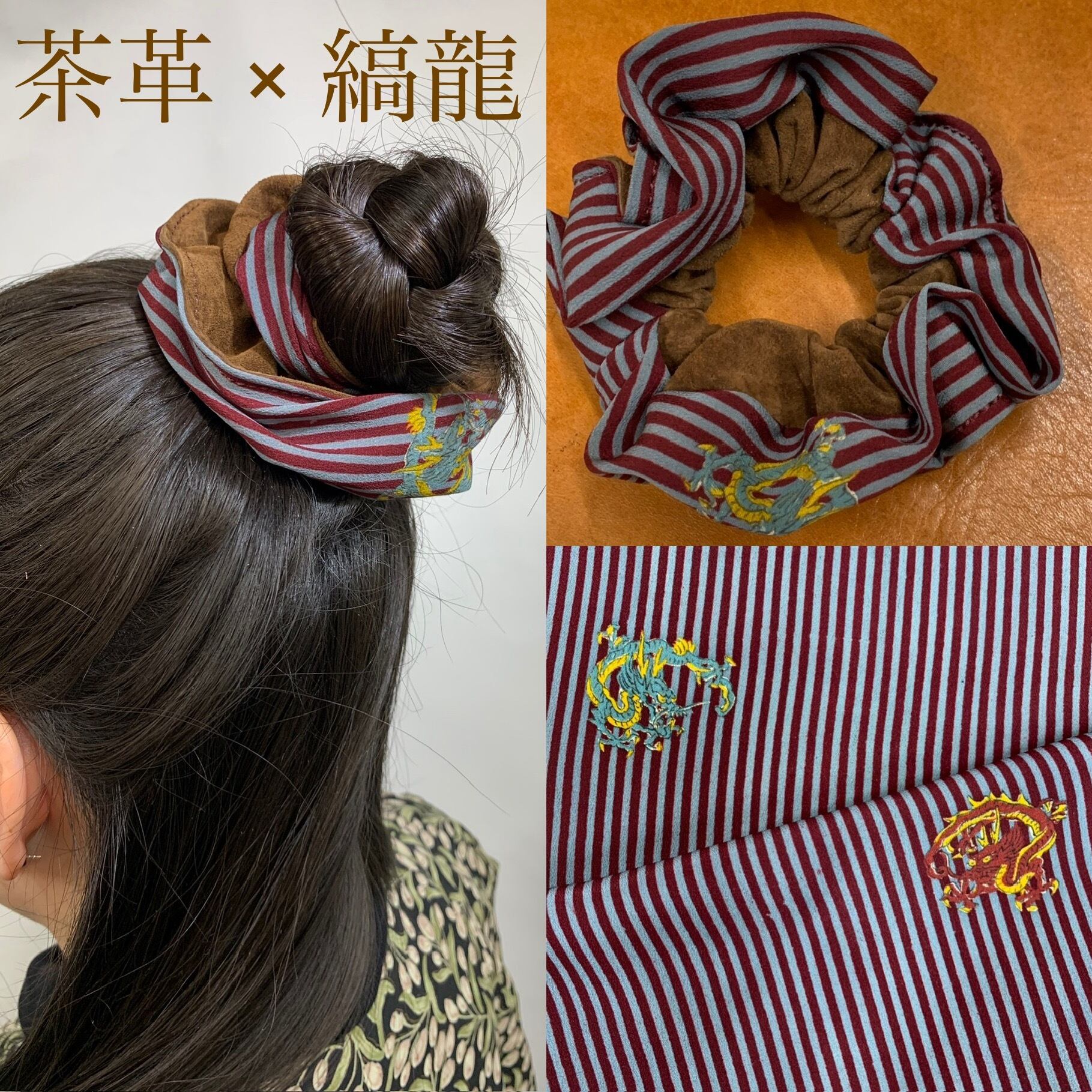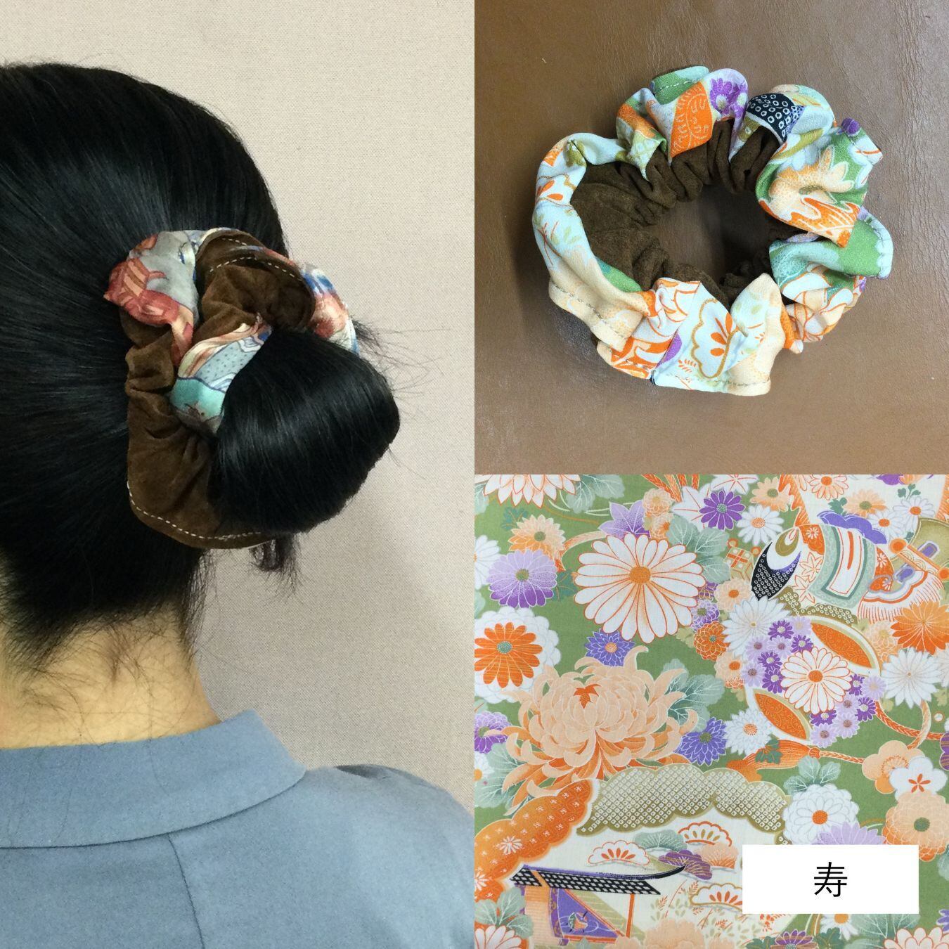 豚革と着物地を使用したシュシュです。