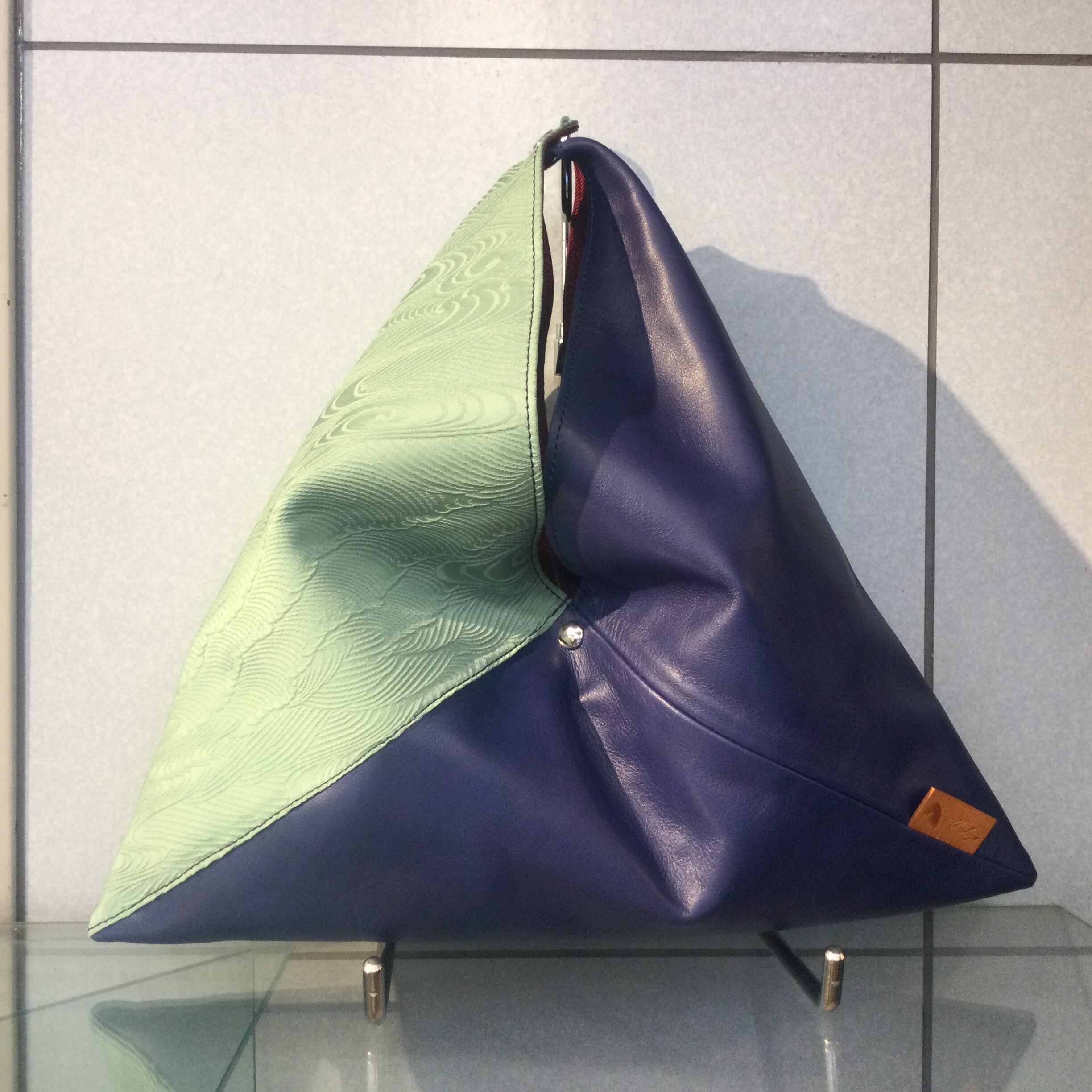 AK001 革/和柄 あずま袋バッグ 大 流水