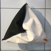 AK001 革/和柄 あずま袋バッグ 大 麻の葉黒