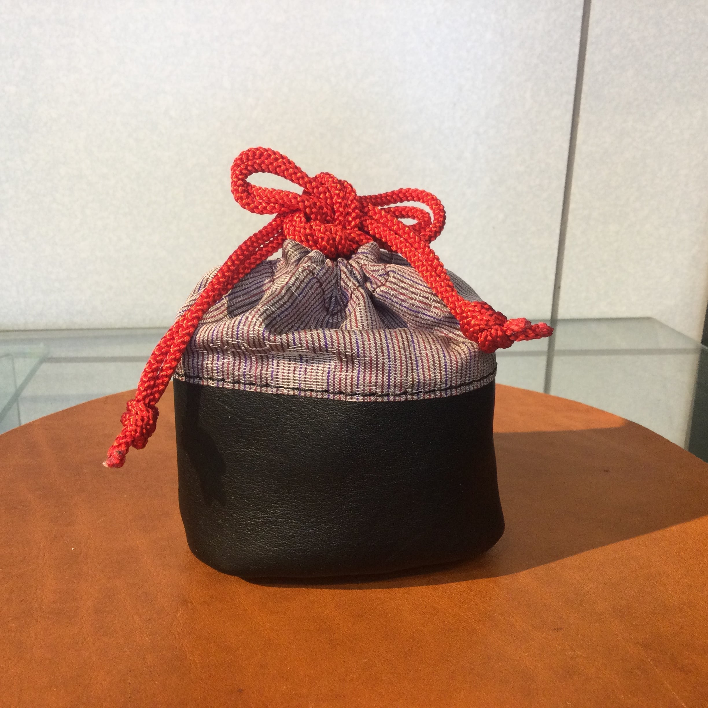 着物と革を組み合わせた手のひらサイズのかわいらしいオリジナルの巾着袋です。