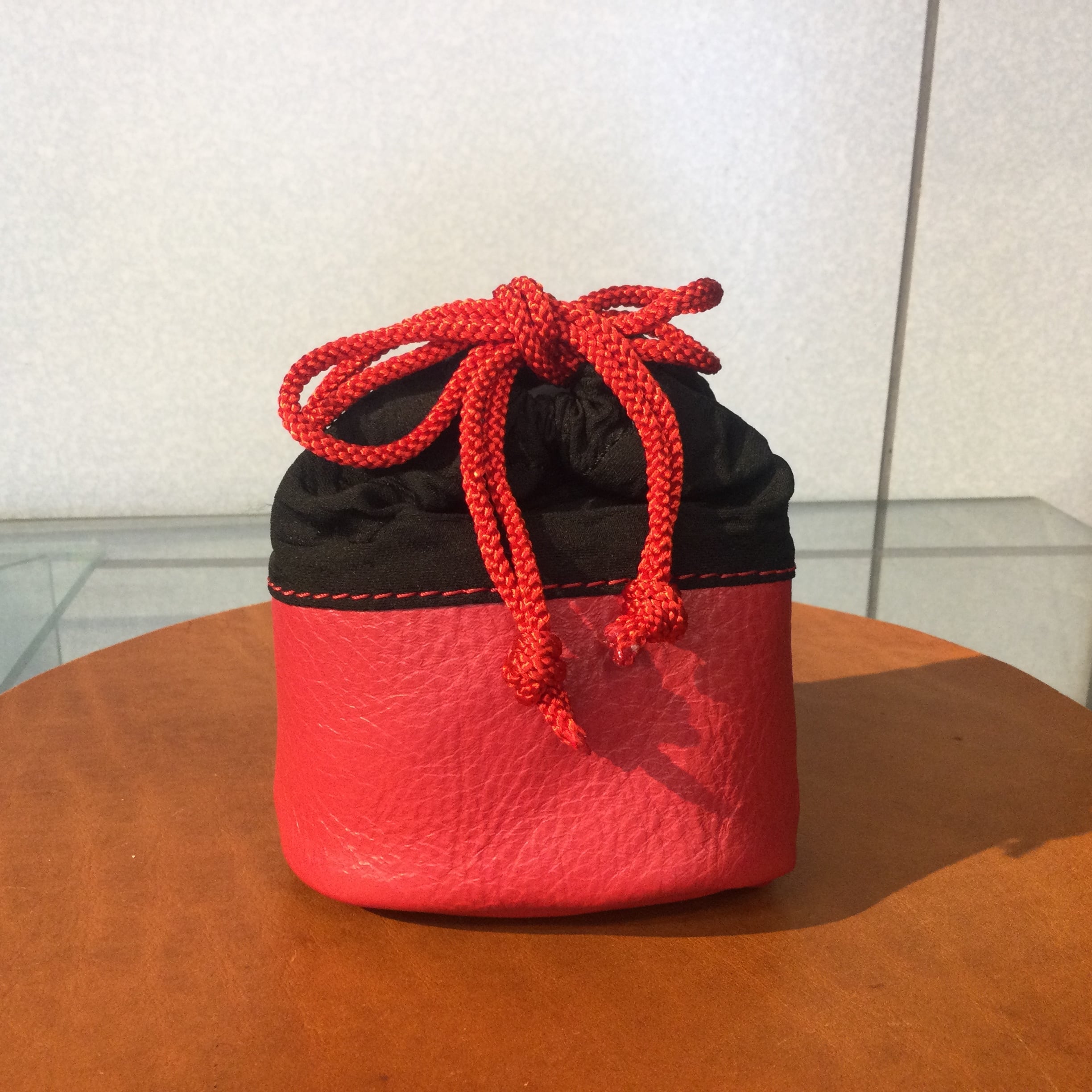 着物と革を組み合わせた手のひらサイズのかわいらしいオリジナルの巾着袋です。