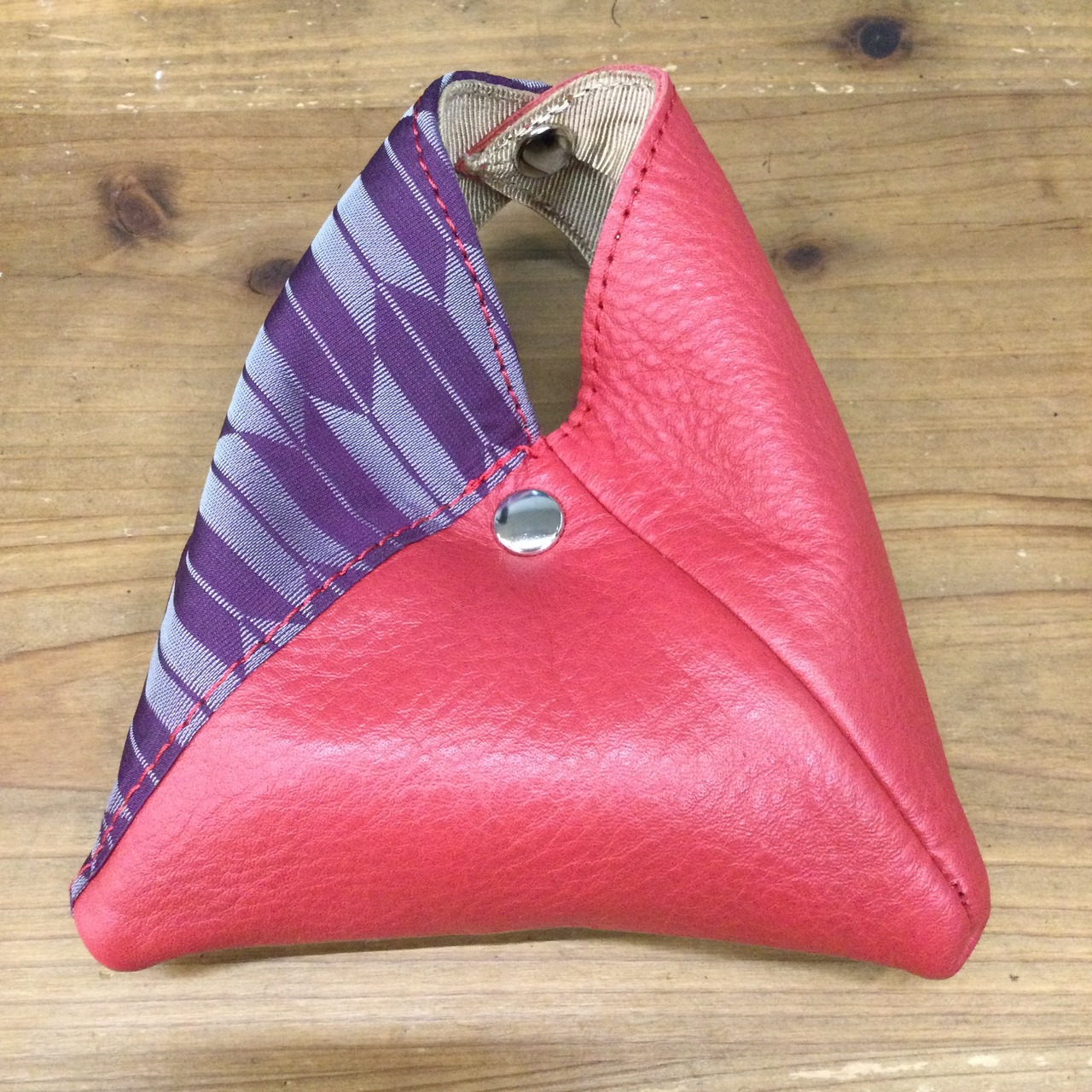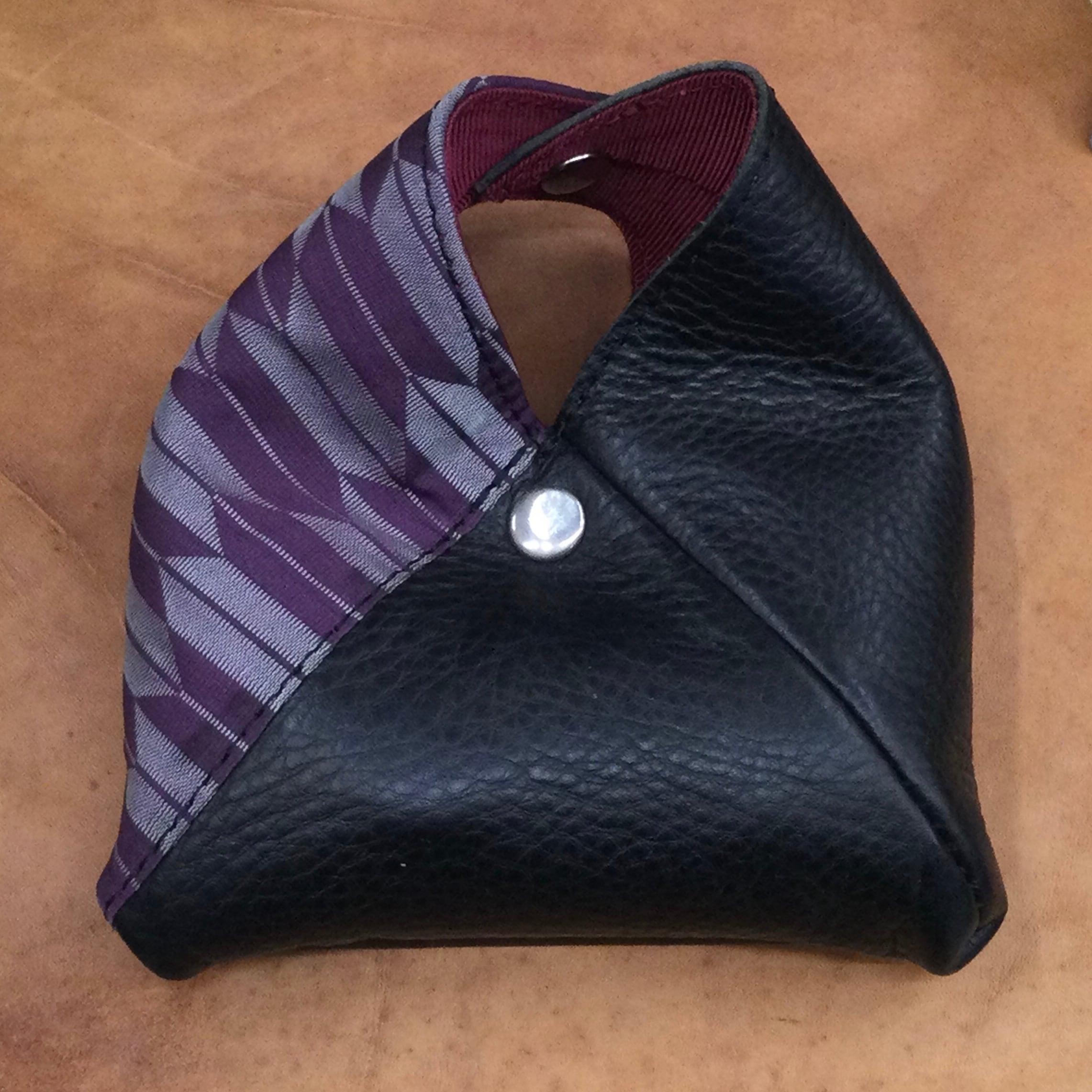 AK005 革/和柄 あずま袋バッグ 小【矢絣】