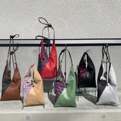 AK003 革/和柄 あずま袋バッグ 中【木蓮】
