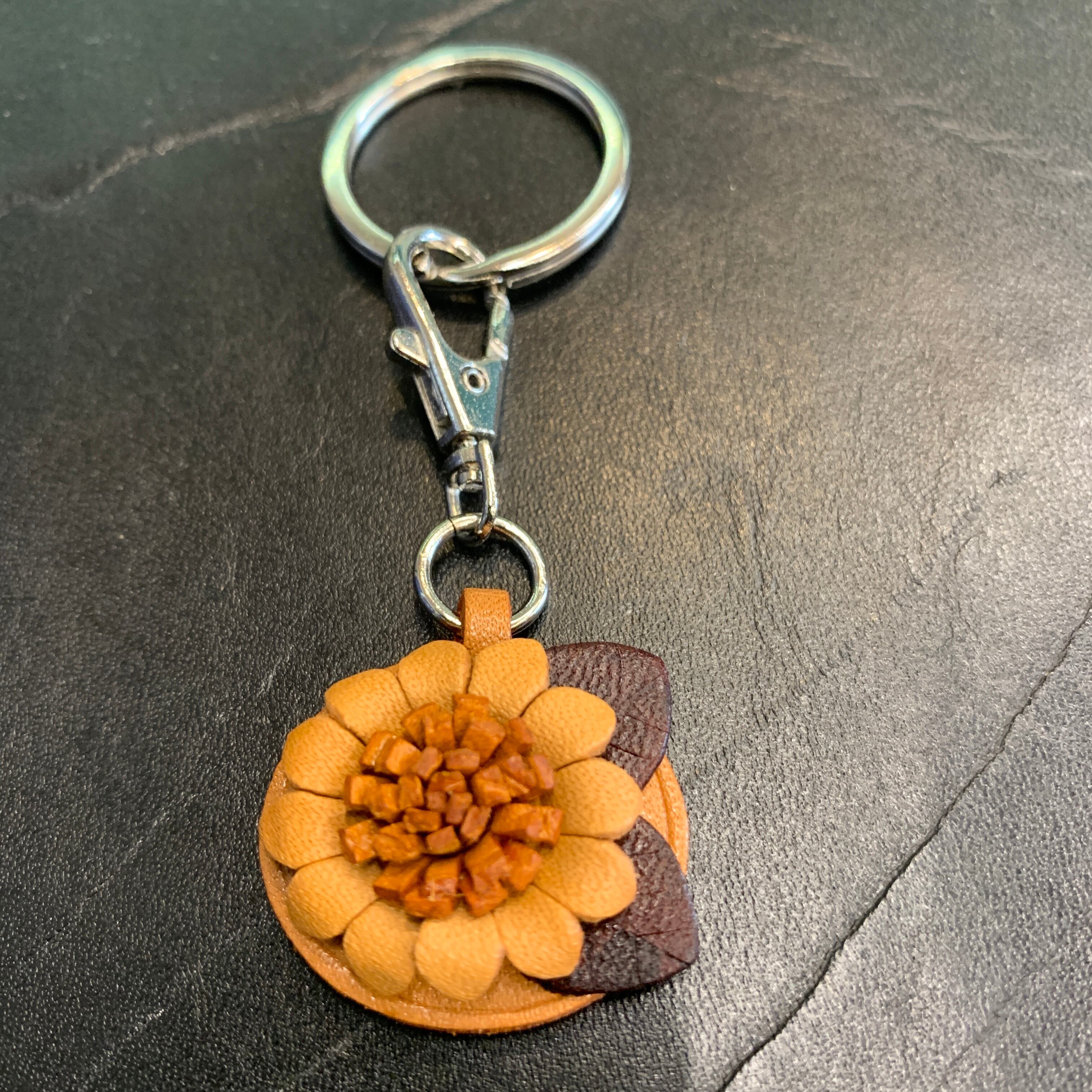 バンカクラフト「花シリーズ」本革キーホルダー。チューリップ、ばらなどの上品なレザーのお花がプレートの上に