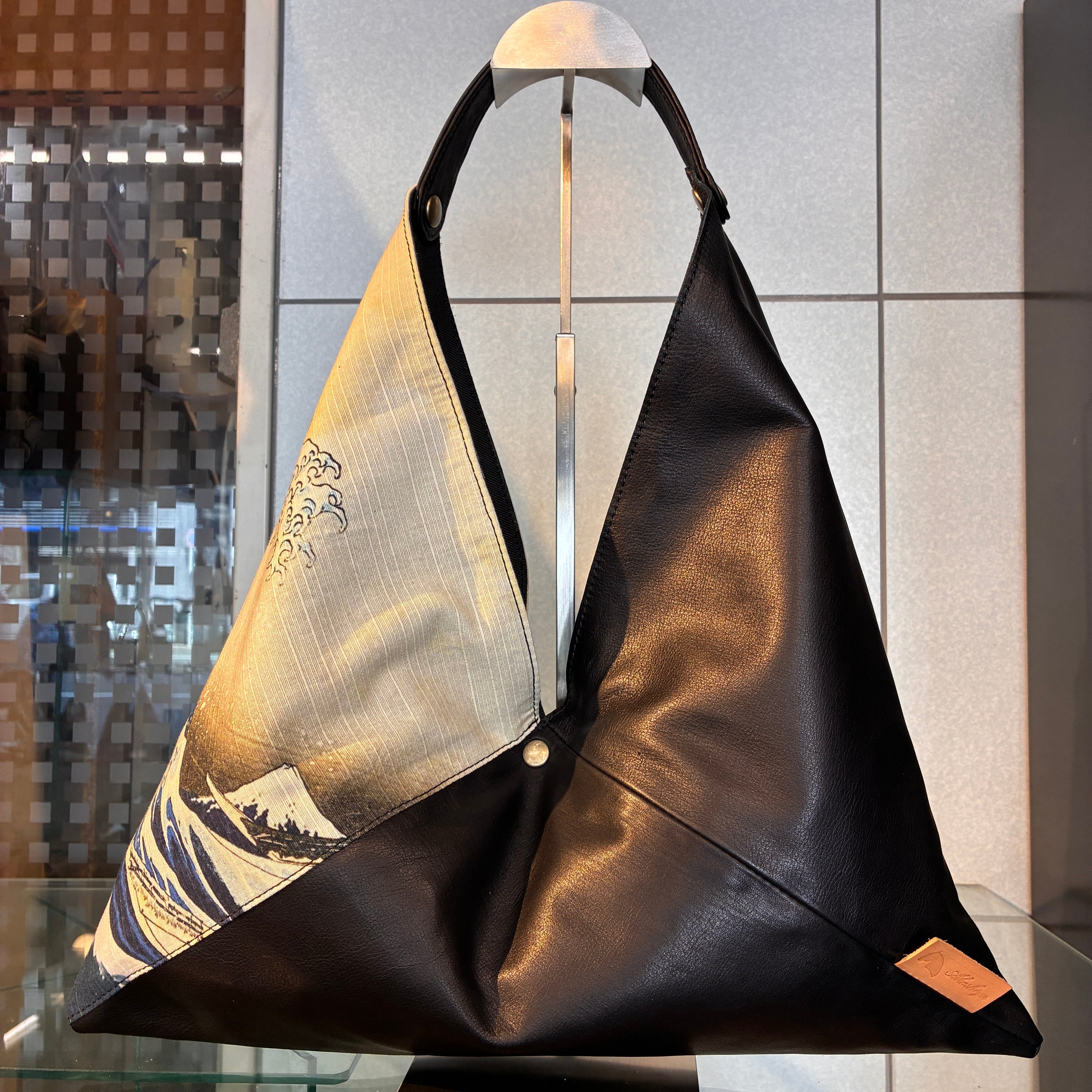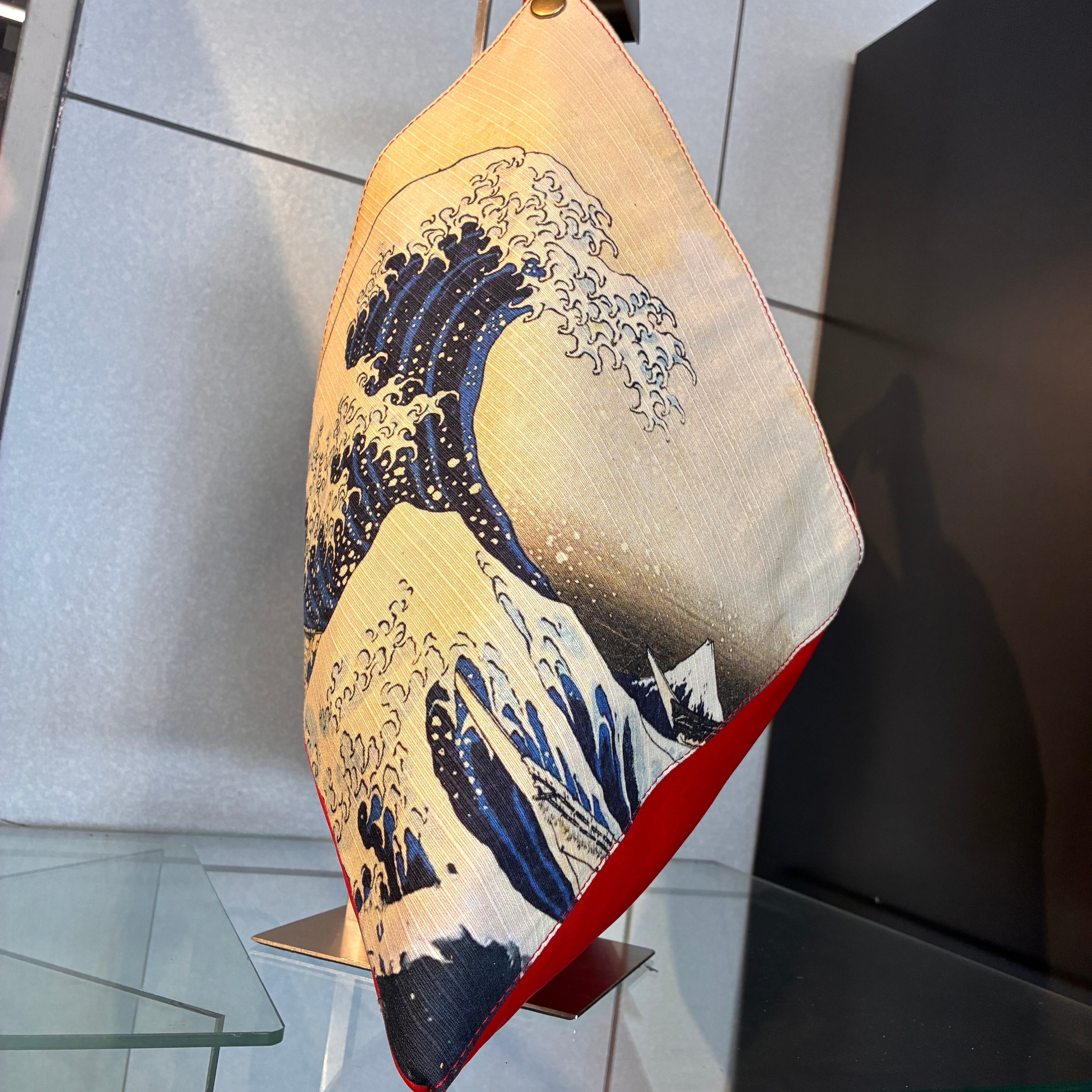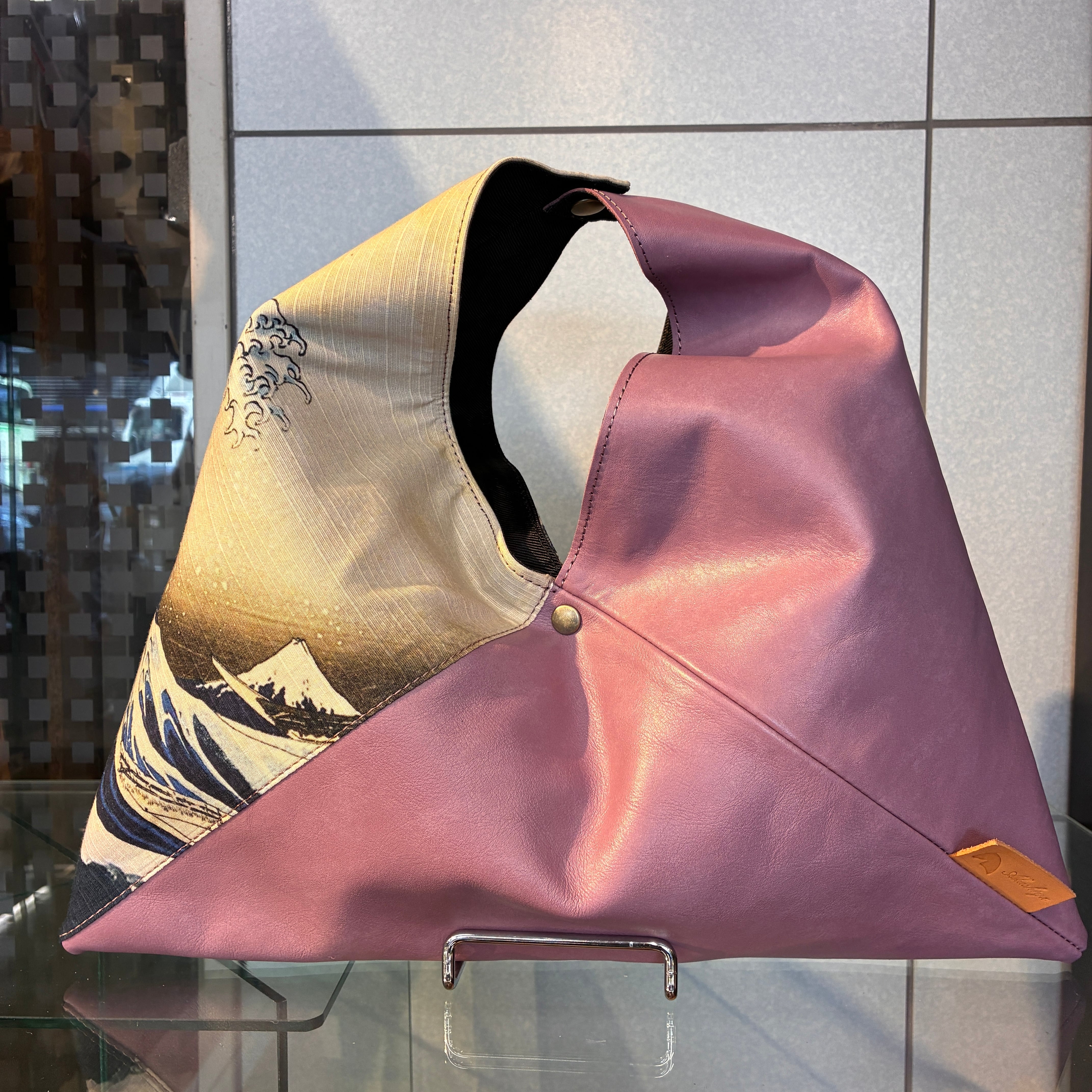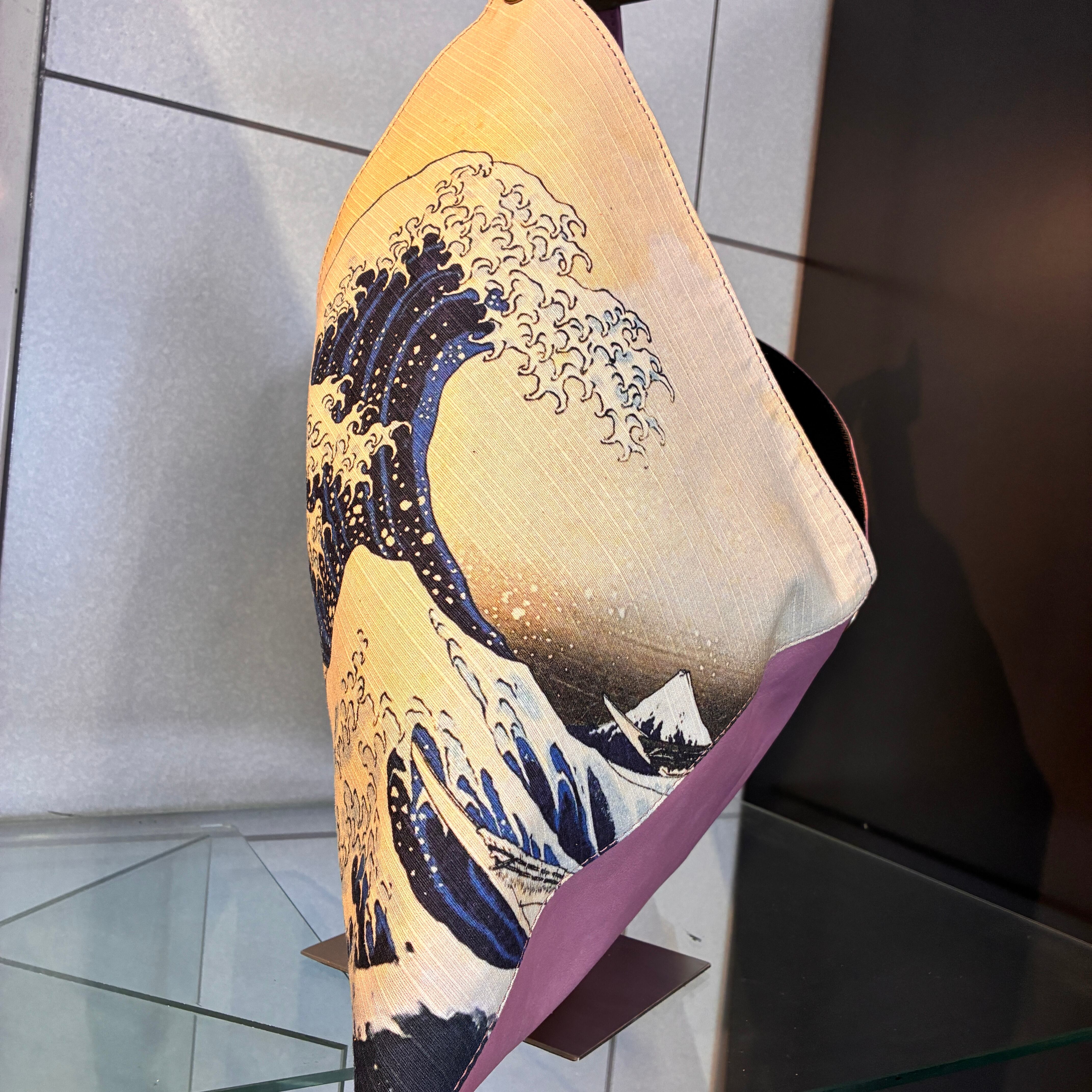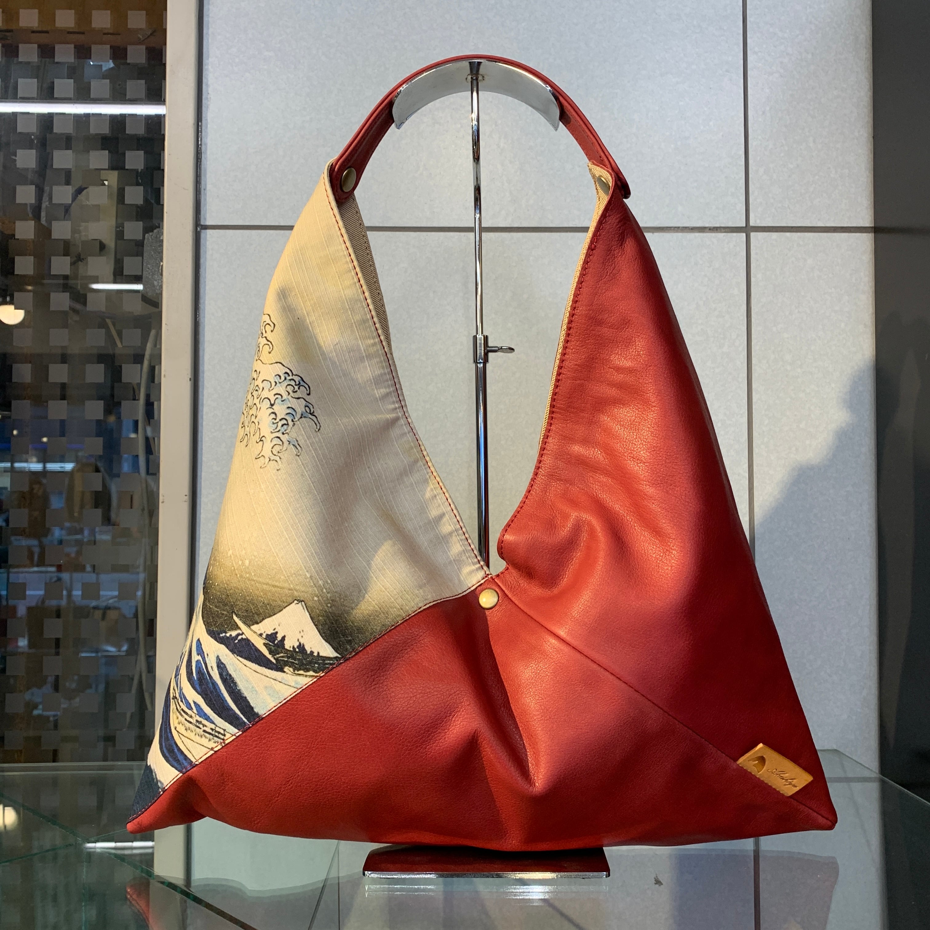日本を代表する絵画である浮世絵、葛飾北斎の『神奈川沖浪裏』をカラフルな牛革と合わせ、