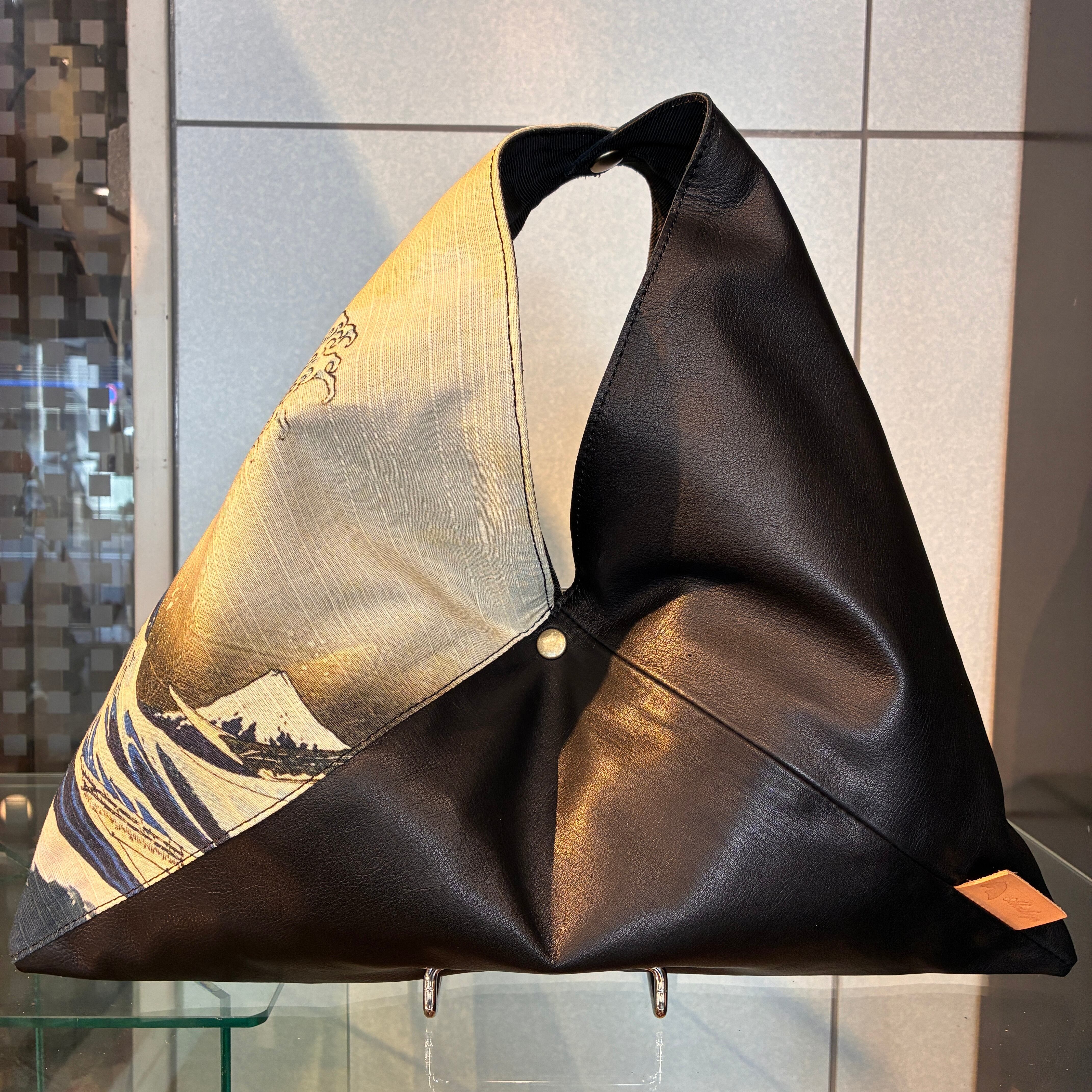 革と融合させた、独創性のあるあずま袋バッグです。