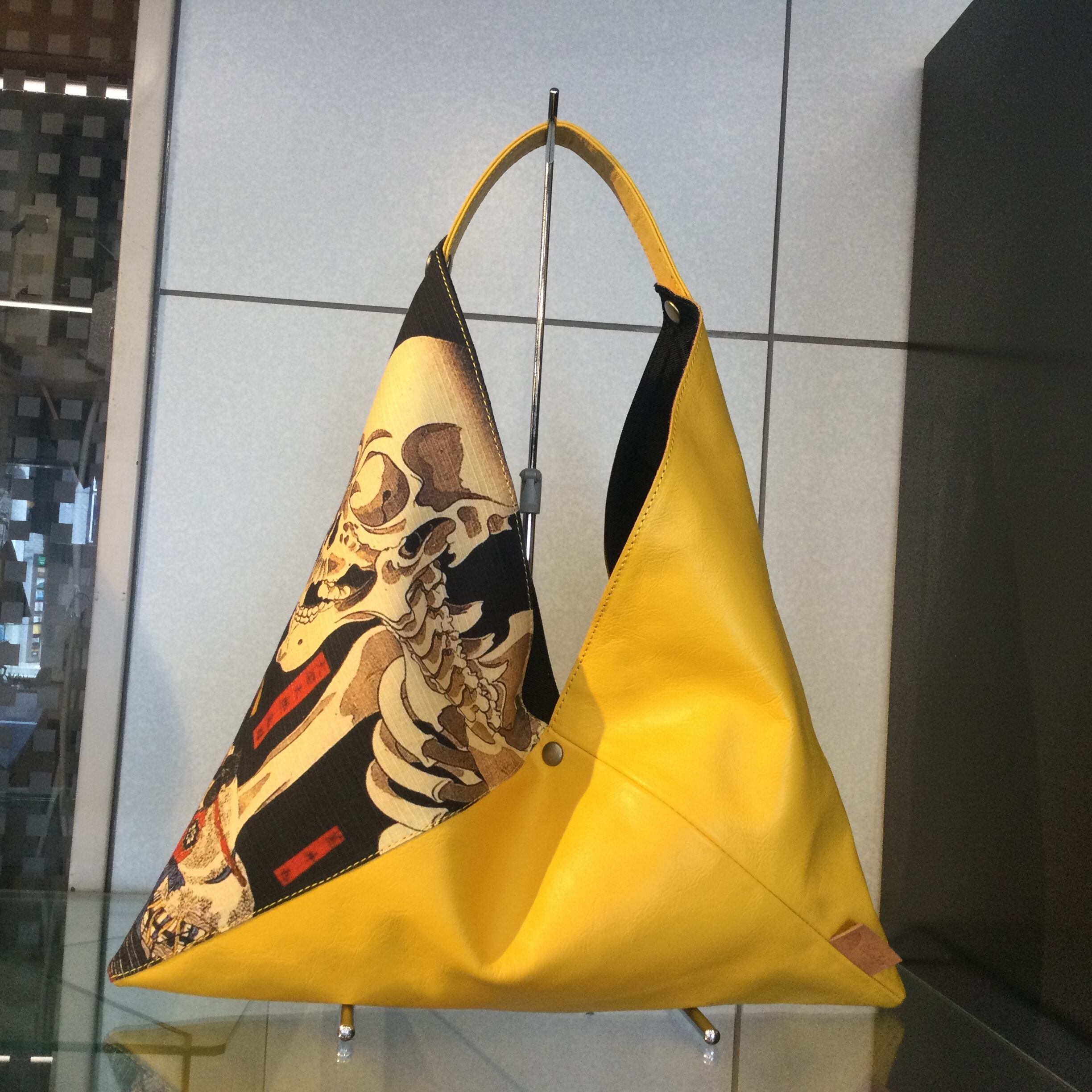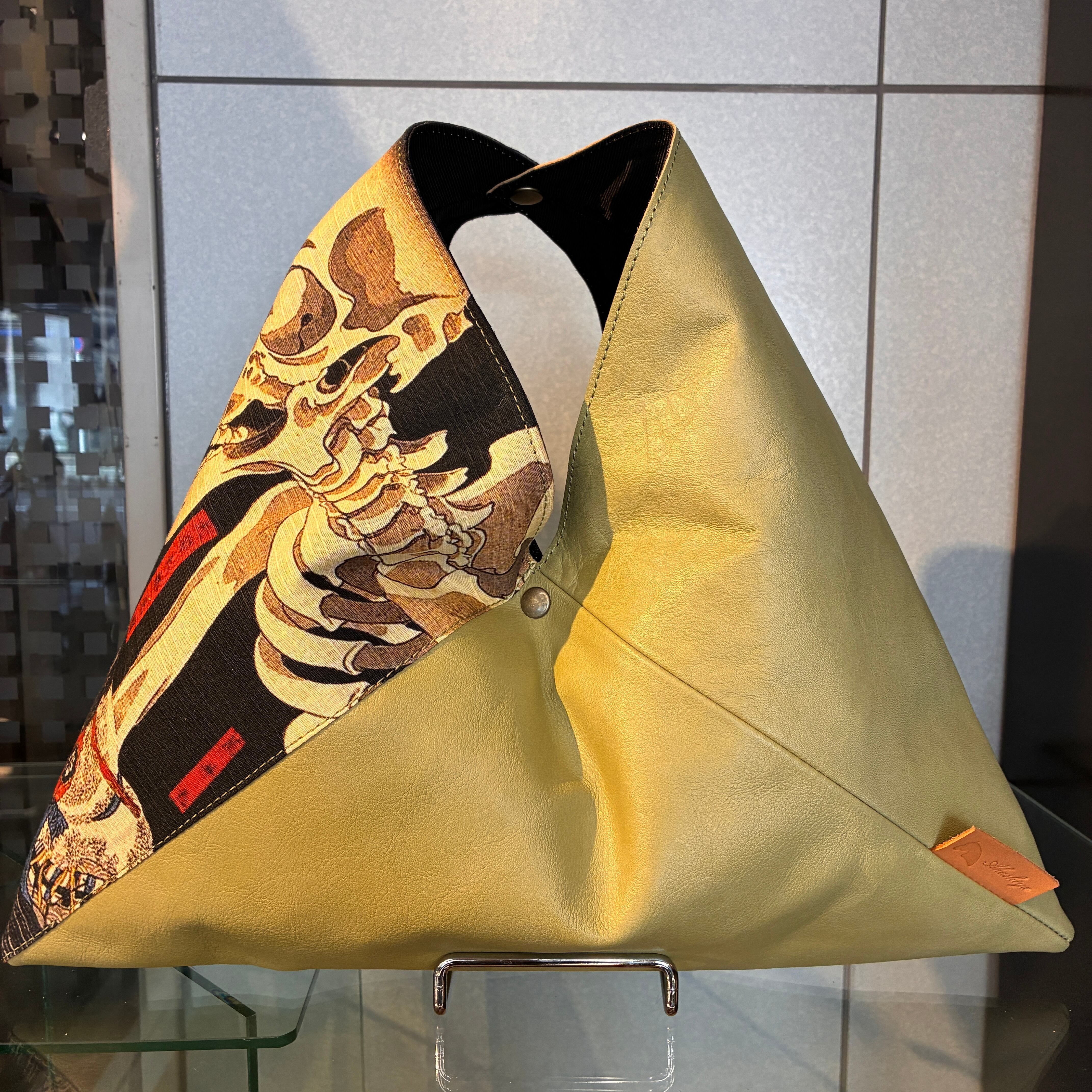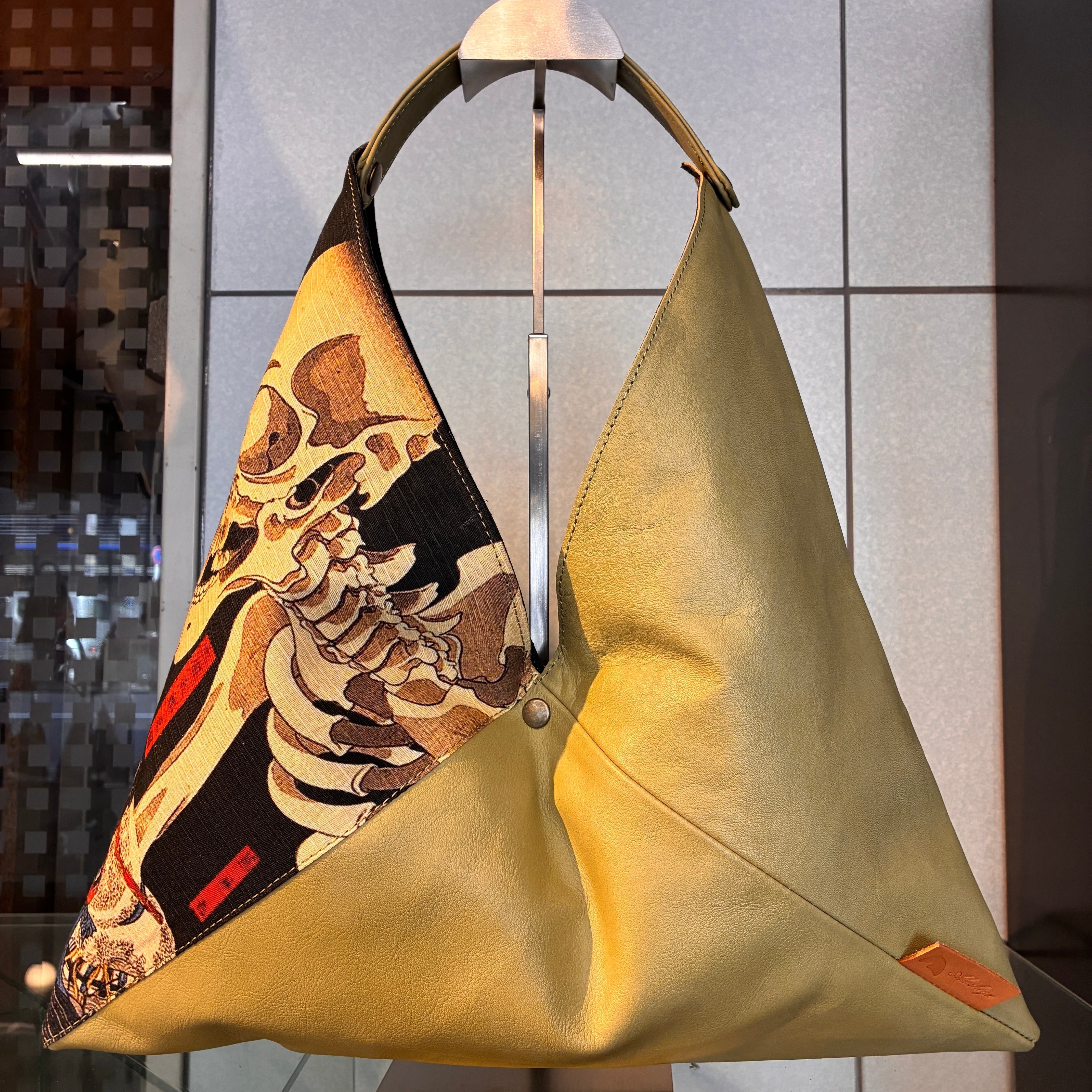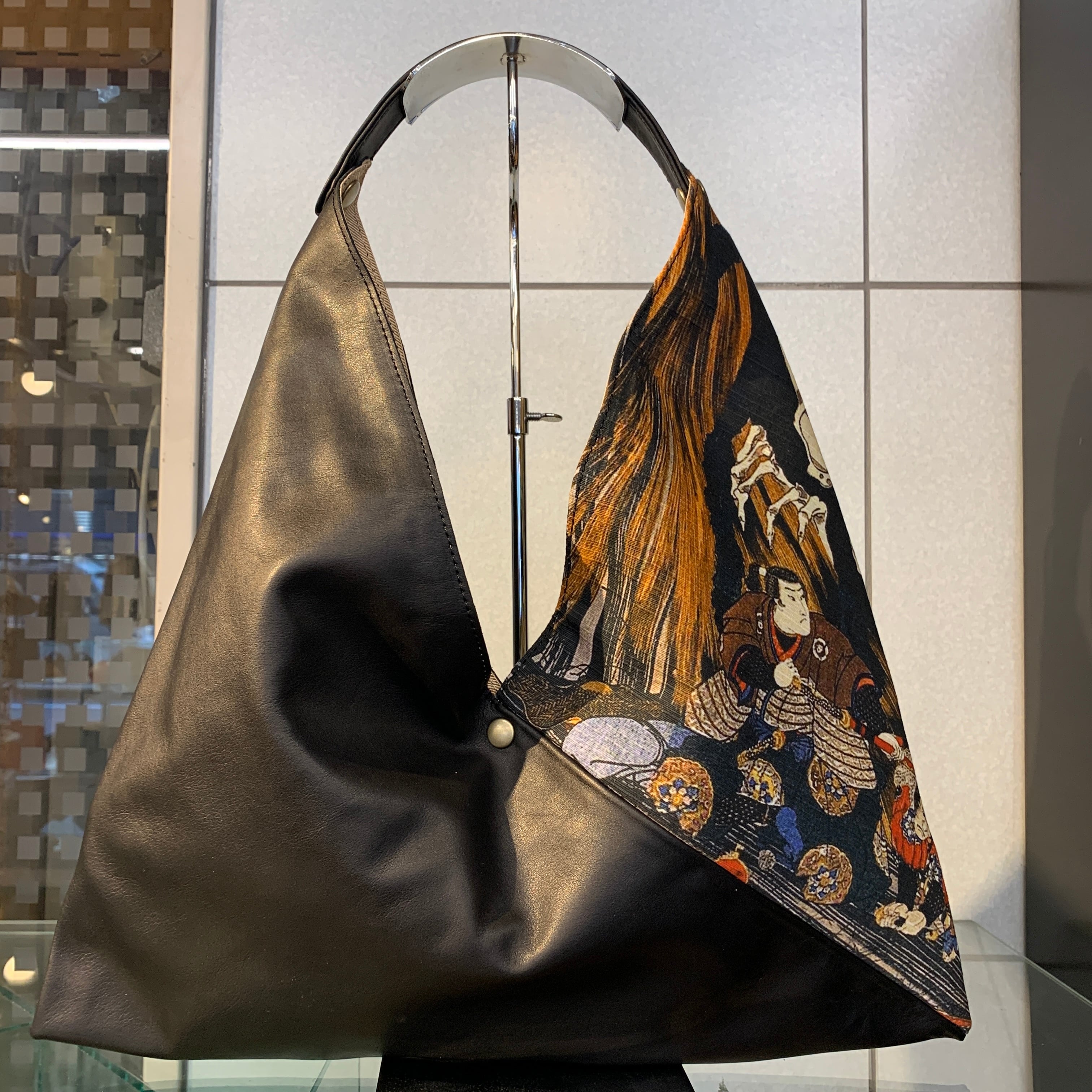 日本を代表する絵画である浮世絵、歌川国芳の『相馬の古内裏』をカラフルな牛革と合わせ、