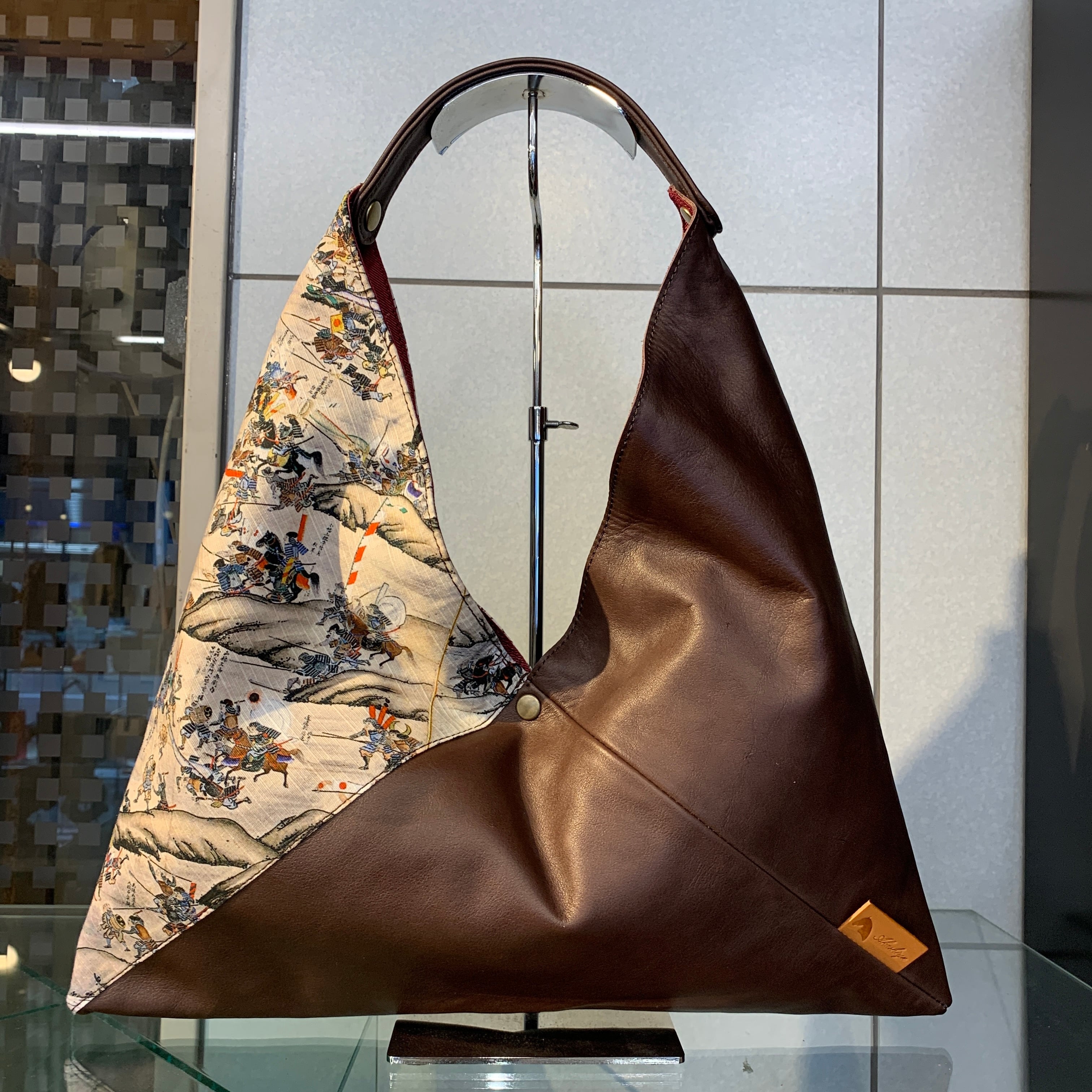 革と融合させた、独創性のあるあずま袋バッグです。