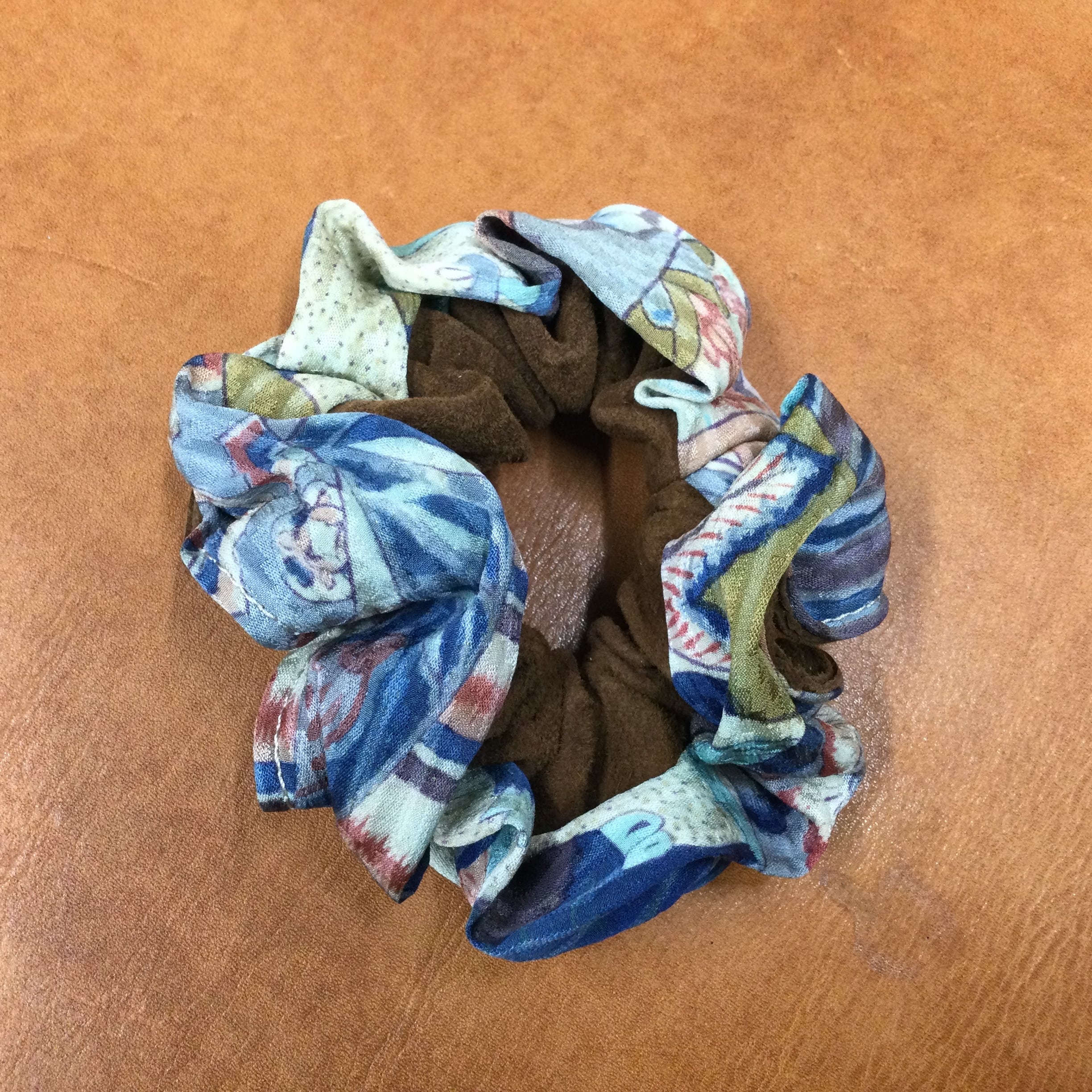 豚革と着物地を使用したシュシュです。