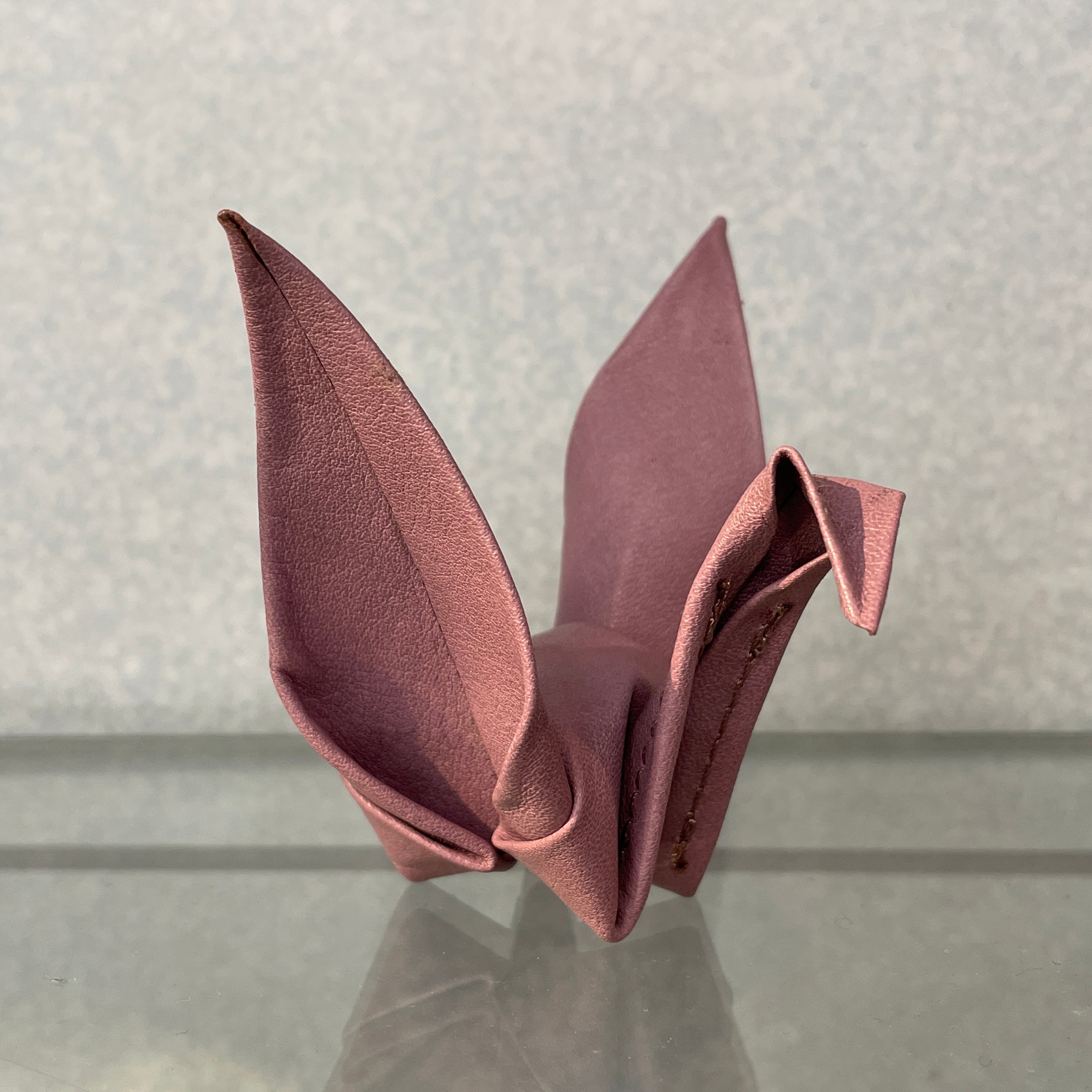 紙で折るのとは違い、厚みのある革で折ってますので、柔らかい雰囲気が出ております。