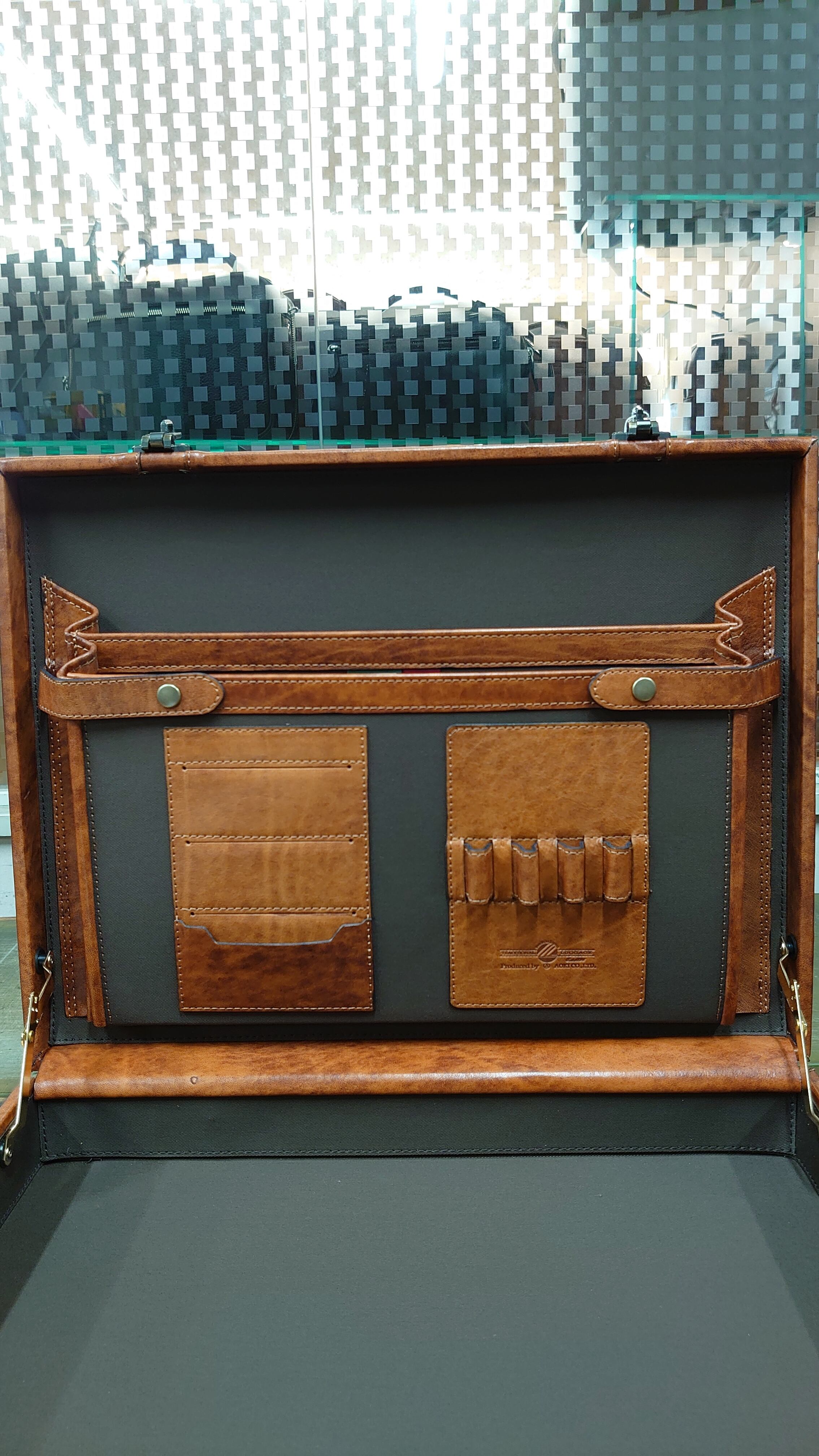 クラシカルなシャドー仕上げをした牛革が作る表情豊かなアタッシュケースは、3ダイヤル式の施錠ができる安全性と重厚感あふれるルックスで、持主の信頼感や格調をさらにアップしてくれます。