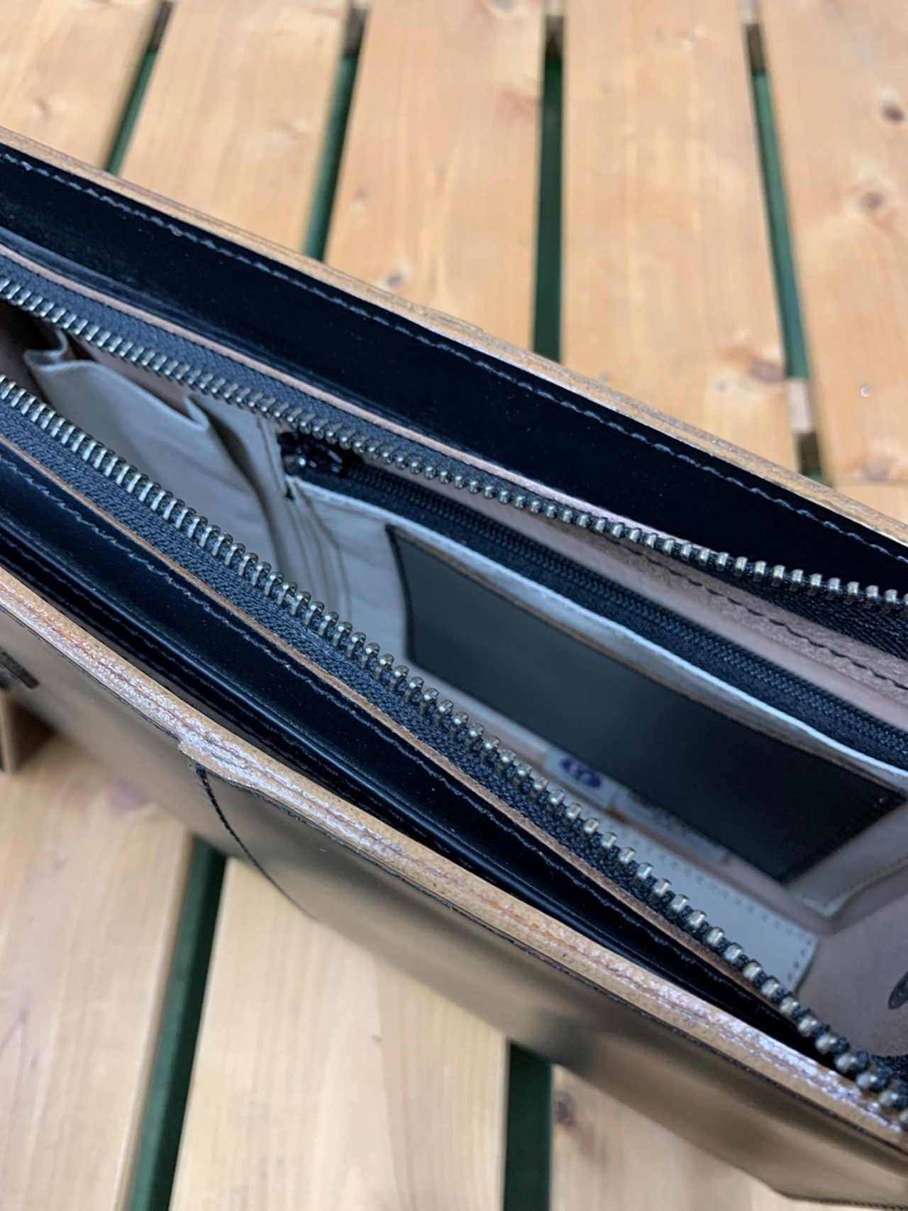 ガラス加工の艶やかな革とステッチワークが魅力のセカンドバッグは、 メイドインジャパンならではの仕立ての美しさで、 仕事や普段使いはもちろん、冠婚葬祭などのフォーマルな席で大活躍します。