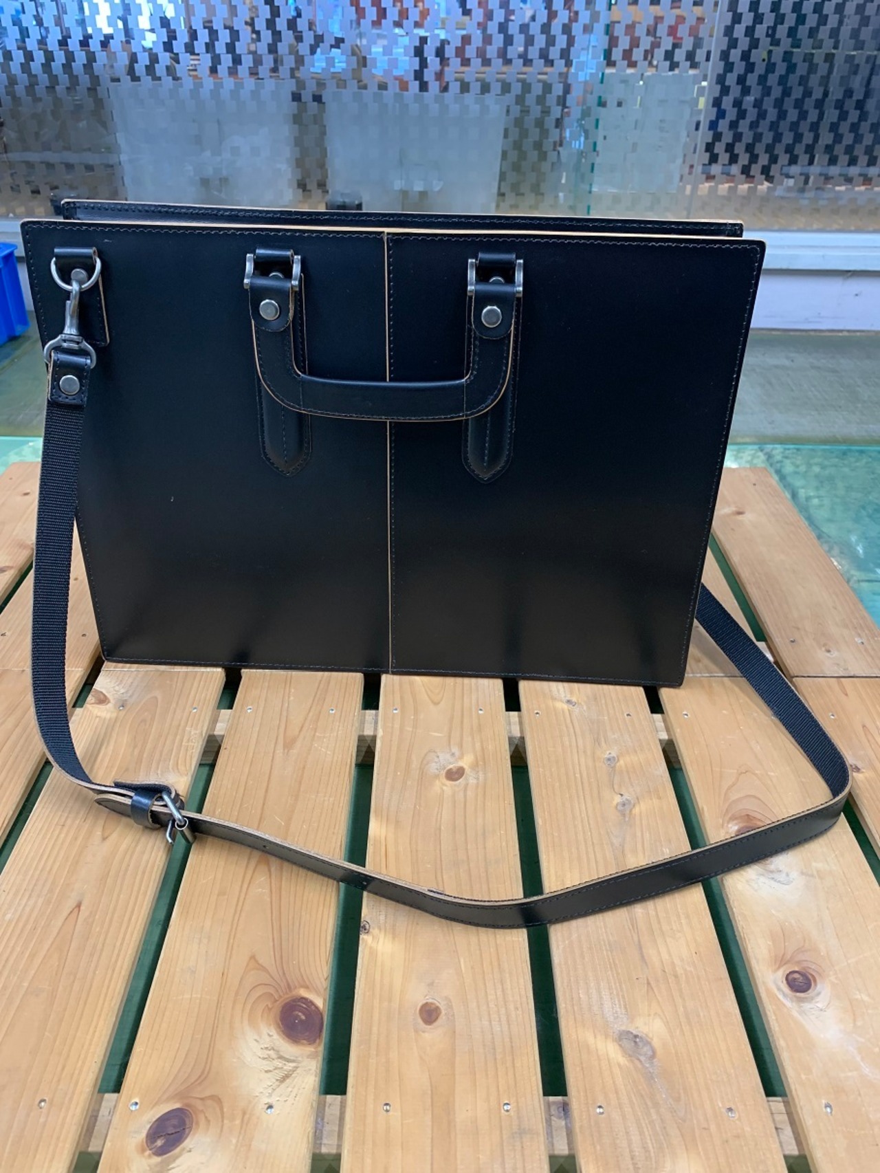 ガラス加工の美しい革とステッチワークが魅力のブリーフケースは、 A4ファイルサイズ対応の、ビジネス向けバッグです。