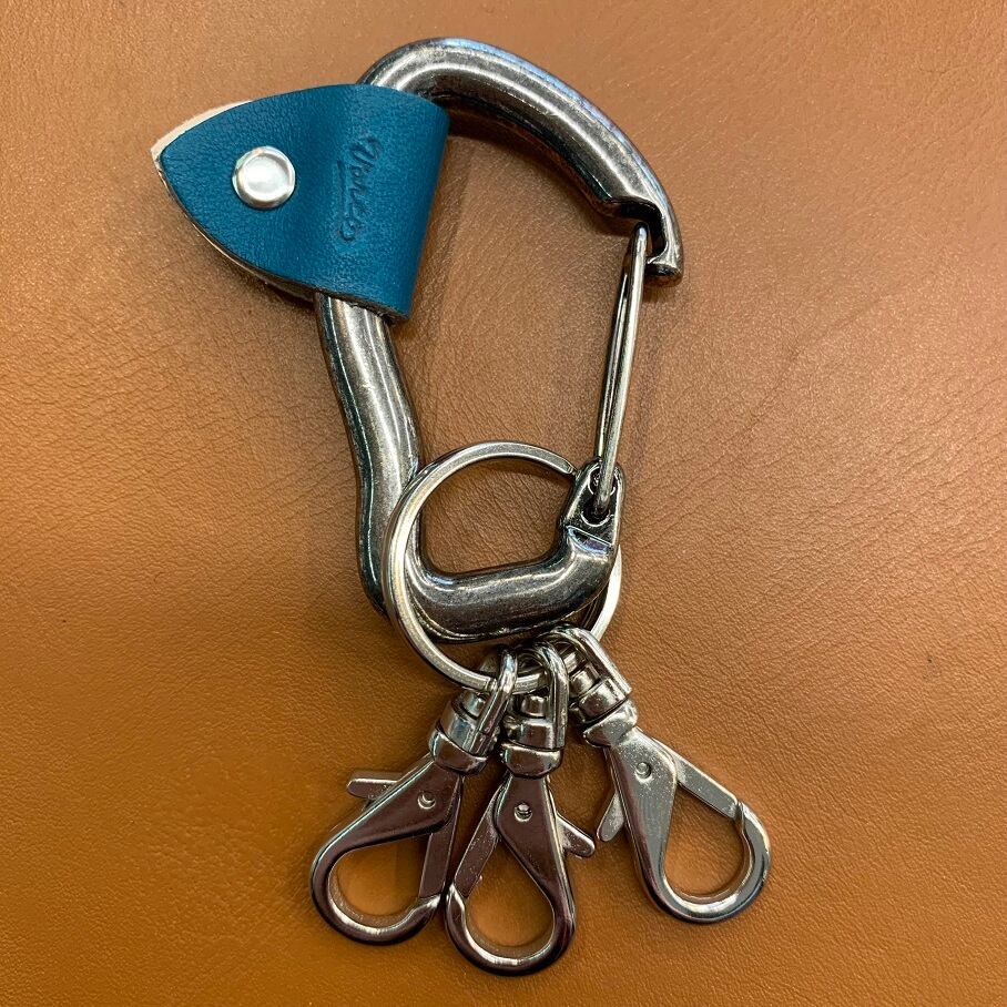 (亜鉛)ダイキャスト素材でしっかりとした作りのカラビナにキーリングとナスカンが3個付いています。