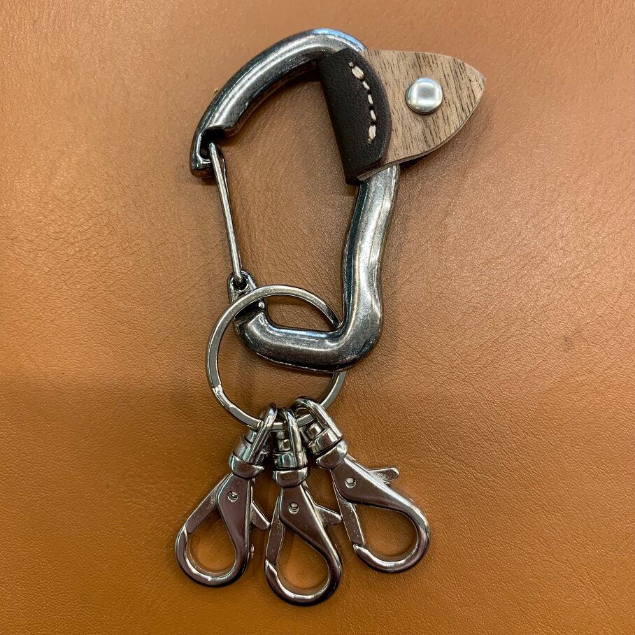 バッグのDカン部分につけたりベルトループに通してもアクティブでスタイリッシュさを感じさせる本格派のカラビナです。