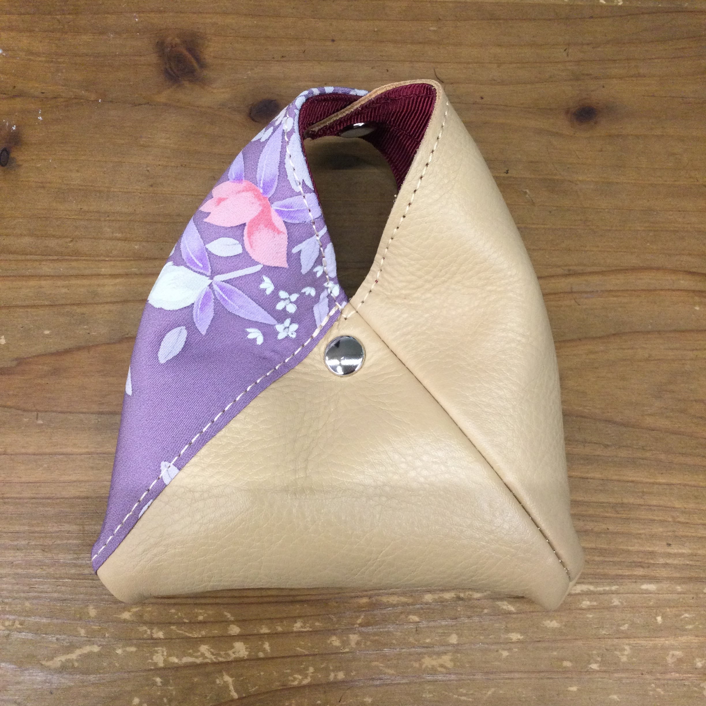 AK005 革/和柄 あずま袋バッグ 小 (木蓮)